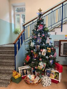Abbiamo addobbato l’albero con i libri che le famiglie, anche quest’anno, hanno donato alla scuola in occasione del periodo dedicato al progetto #ioleggoperchè.