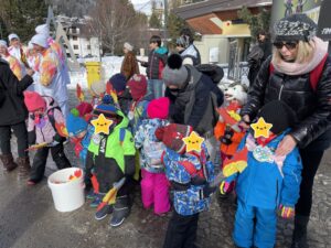 Abbiamo seguito i tedofori sino al giardino antistante il comune, dove siamo stati accolti dai ragazzi della Pro Loco di Ponte di legno, che ci hanno offerto un thè caldo che ci ha dato l’energia per fare una salutare passeggiata per le vie del paese, passando davanti alla sorgente del fiume Oglio.